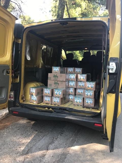 Στο Μικροχώρι, ανάμεσα στο Καπανδρίτι και το Πολυδένδρι έφτασε πριν από λίγο το όχημα της Δημοτικής Αστυνομίας του Δήμου της Αθήνας με 1.000 χυμούς για τους άντρες της πυροσβεστικής.